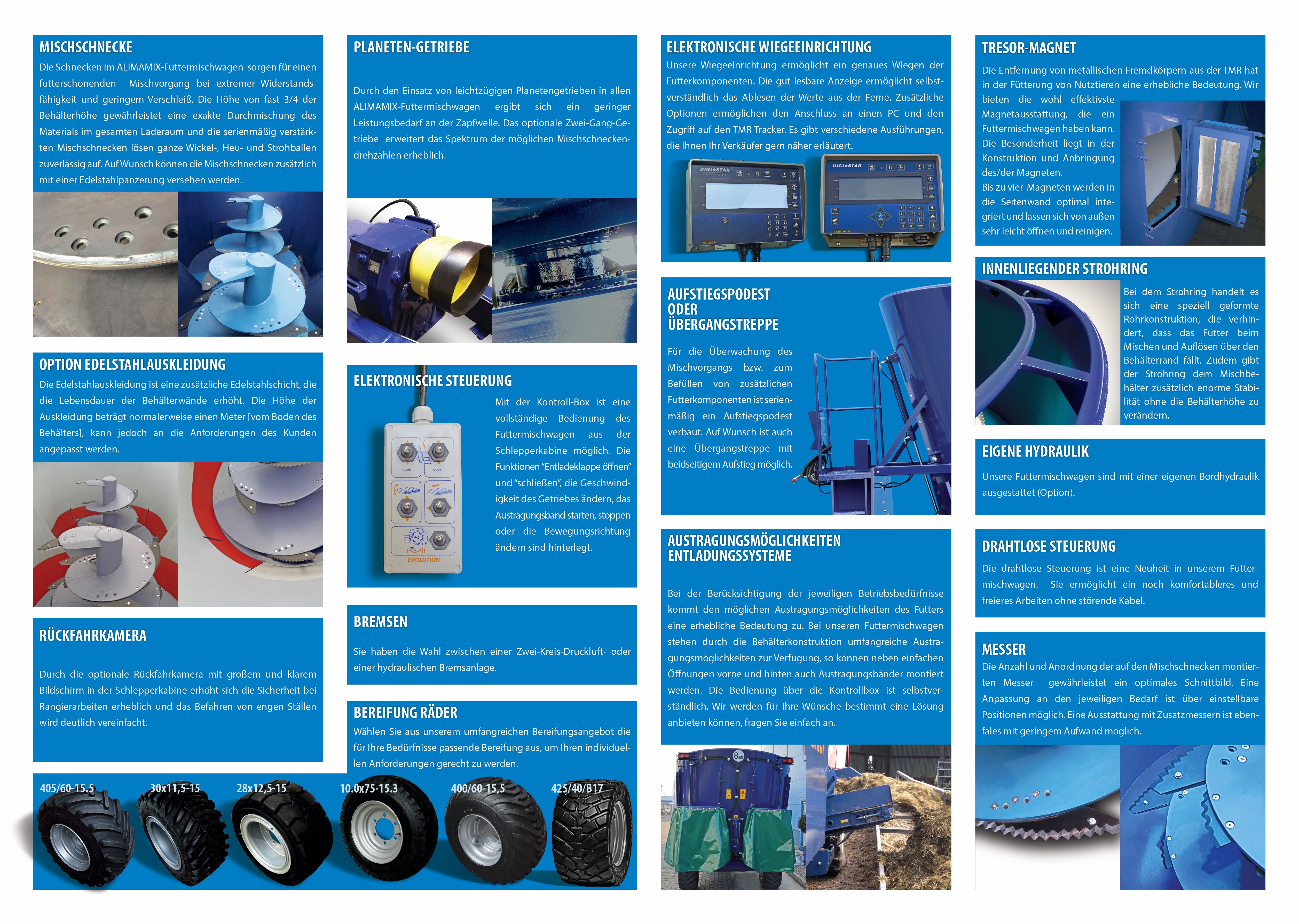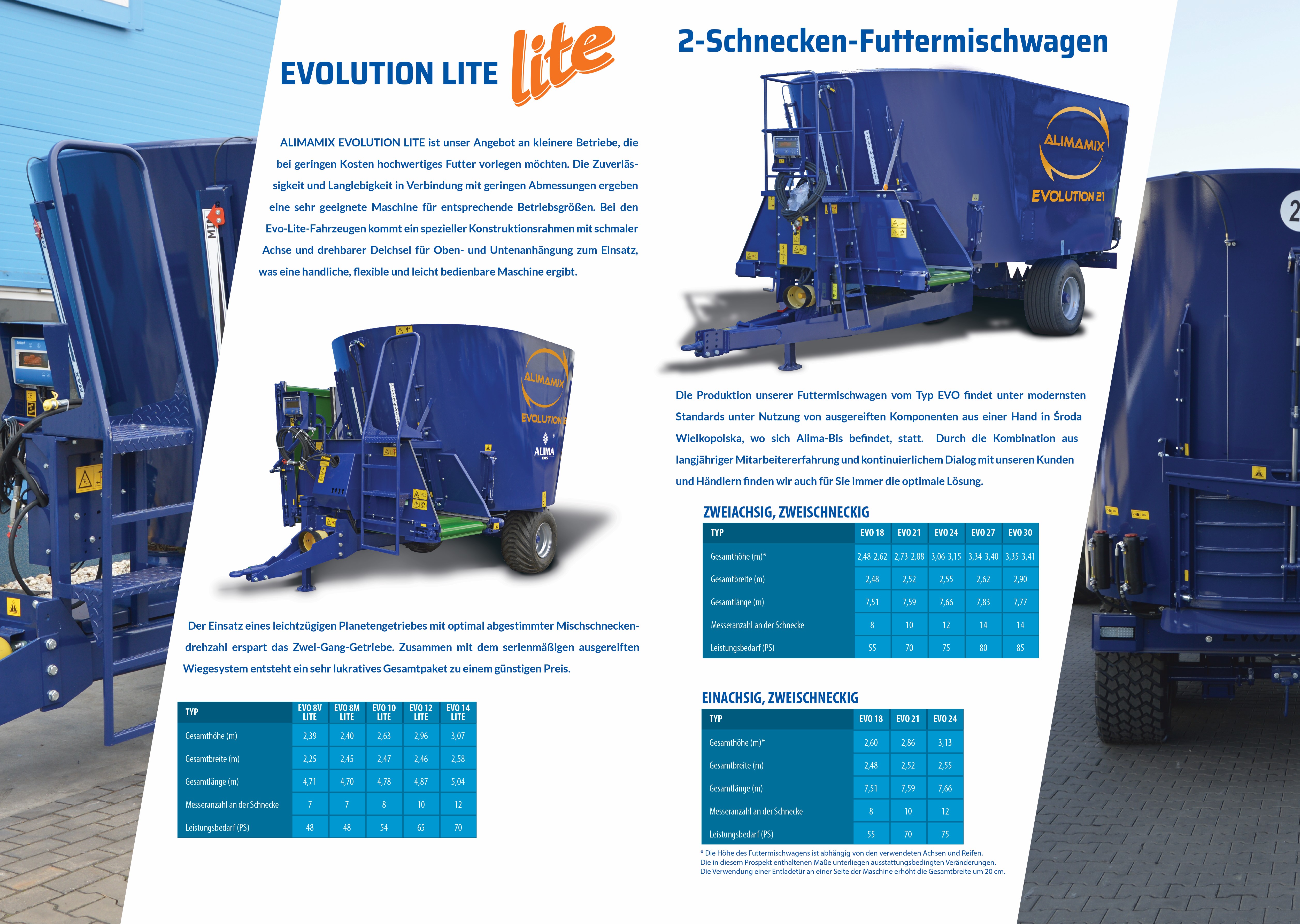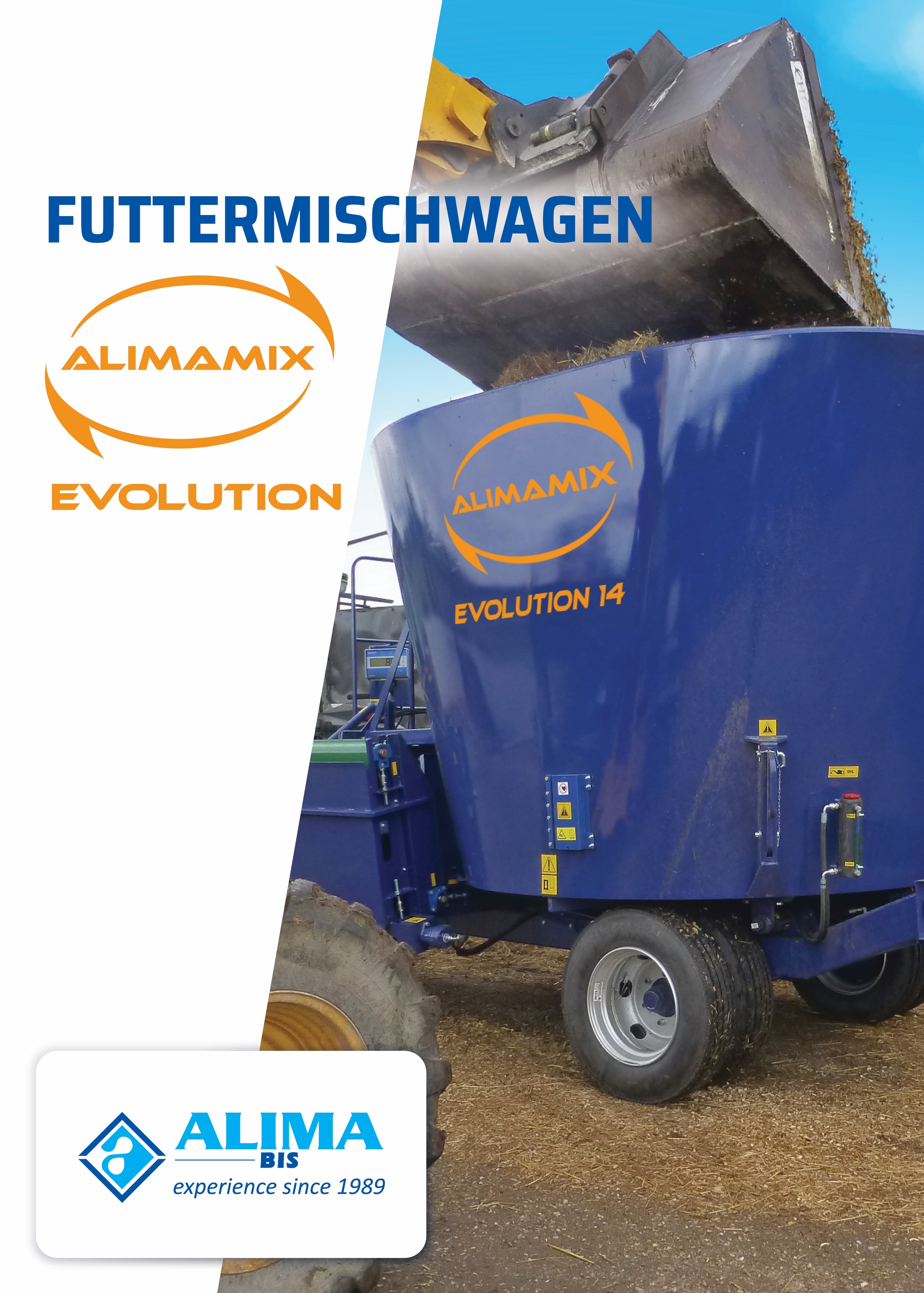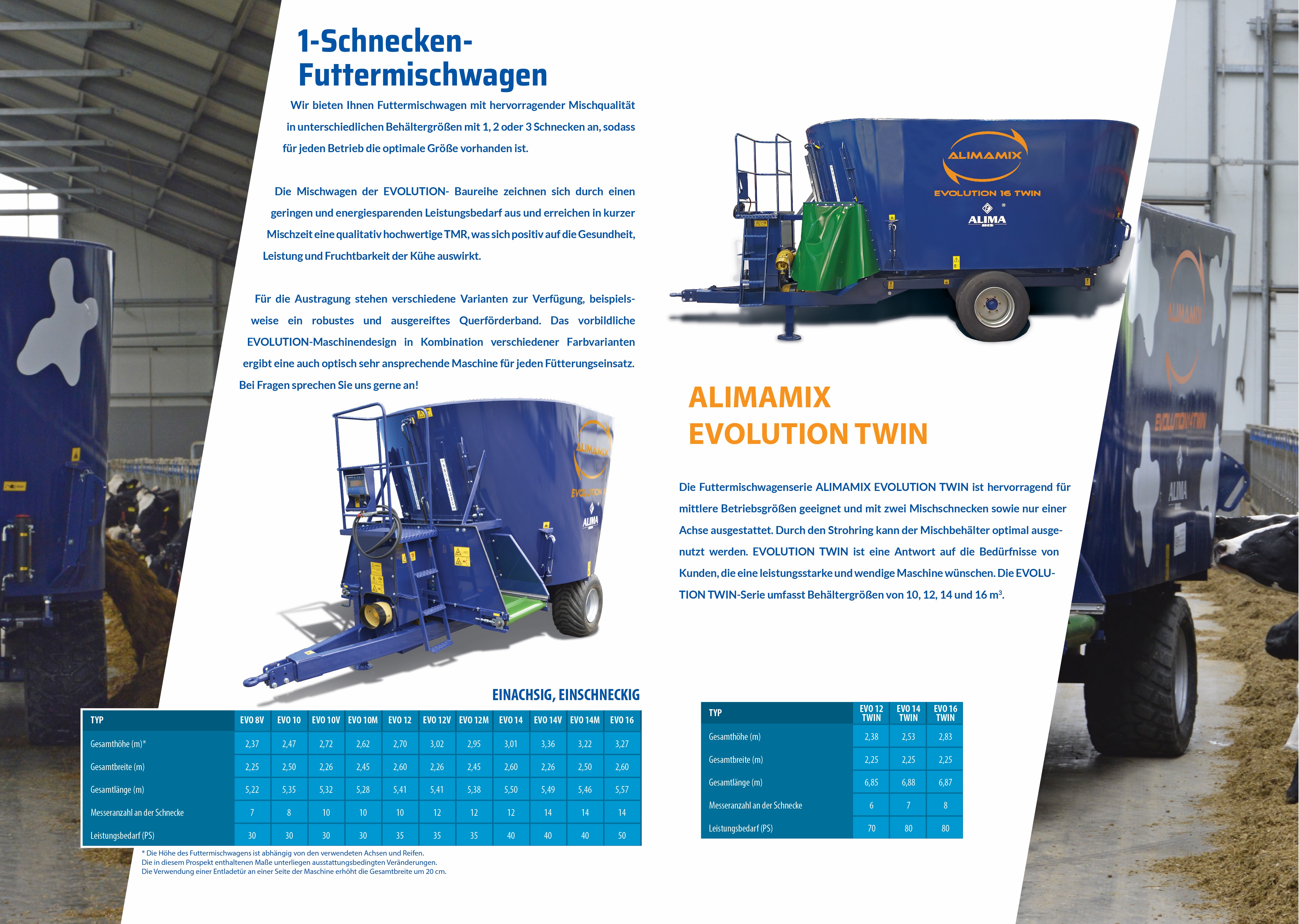- ALIMAMIX EVOLUTION diet feeders ranging from 4 m³ to 50 m³, with a cross-over auger system;